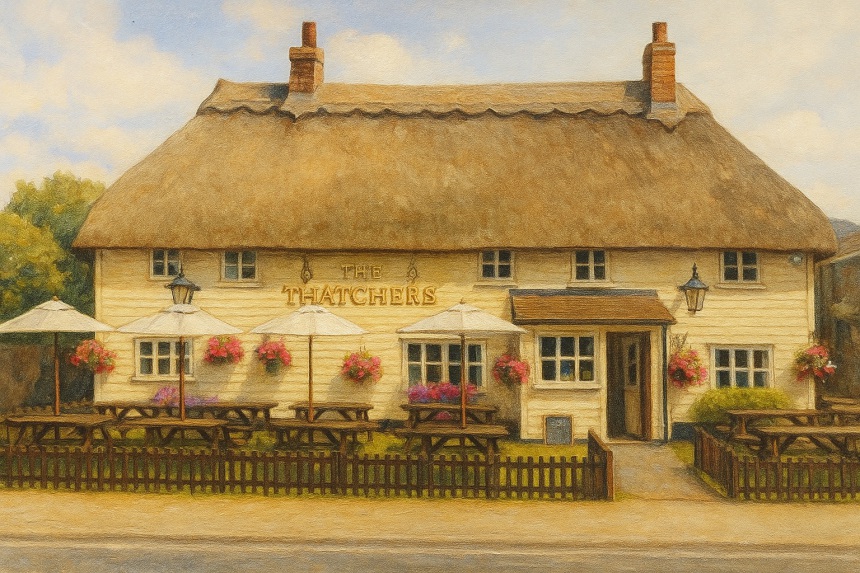 The Thatchers is a Historic 16th Century Thatched Pub, Featuring Oak beams and a Cosy Log burner.